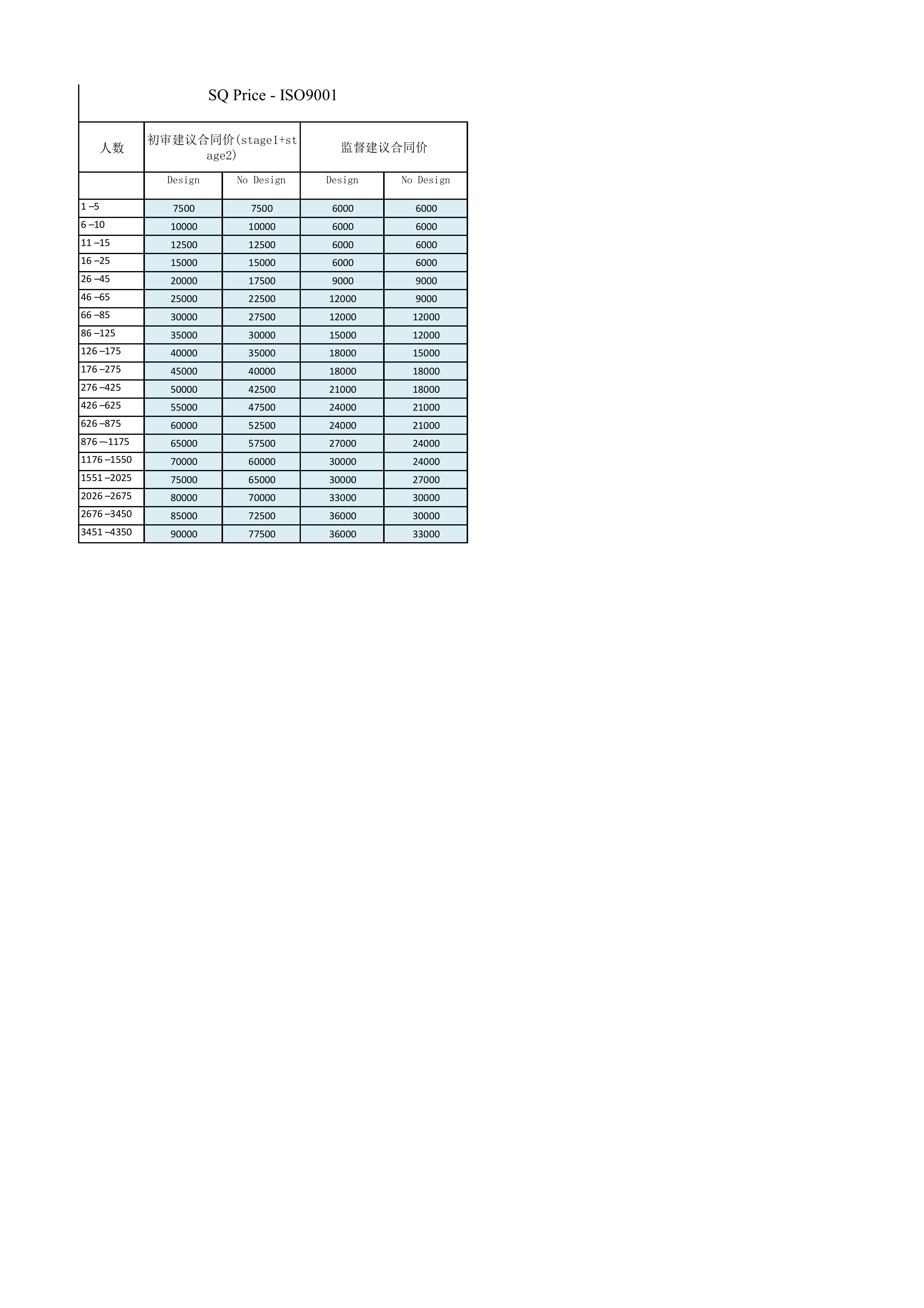 ISO9001价格标准