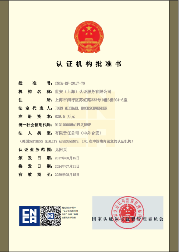 世安认证营业执照